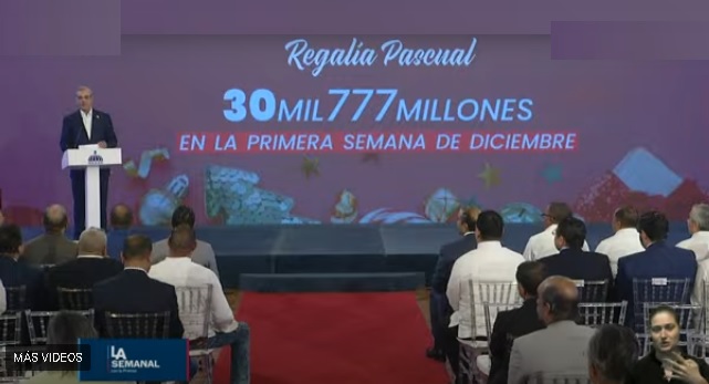 El presidente Luis Abinader revela que Gobierno que encabeza entregalara la regalia en los empoleados de la Administracion Publica, en la primera semana de Diciembre y el moto sera de 30, 777 millones de pesos