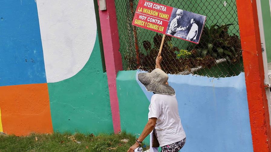 Varios de los carteles estaban dirigidos contra la minera de capital estadounidense que extrae oro de las tierras de Cotuí. «Fuera la Barrick Gold de Cotuí y del país», decía un cartel sostenido por un hombre que también portaba un megáfono.