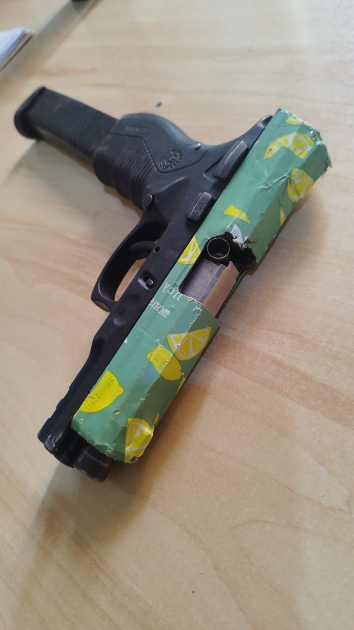 Durante la intervención le ocuparon al hoy occiso una pistola marca Taurus, calibre 9mm, que portaba de manera ilegal, la cual fue la misma que utilizó para atacar a los agentes que intentaban hacer efectiva su captura.
