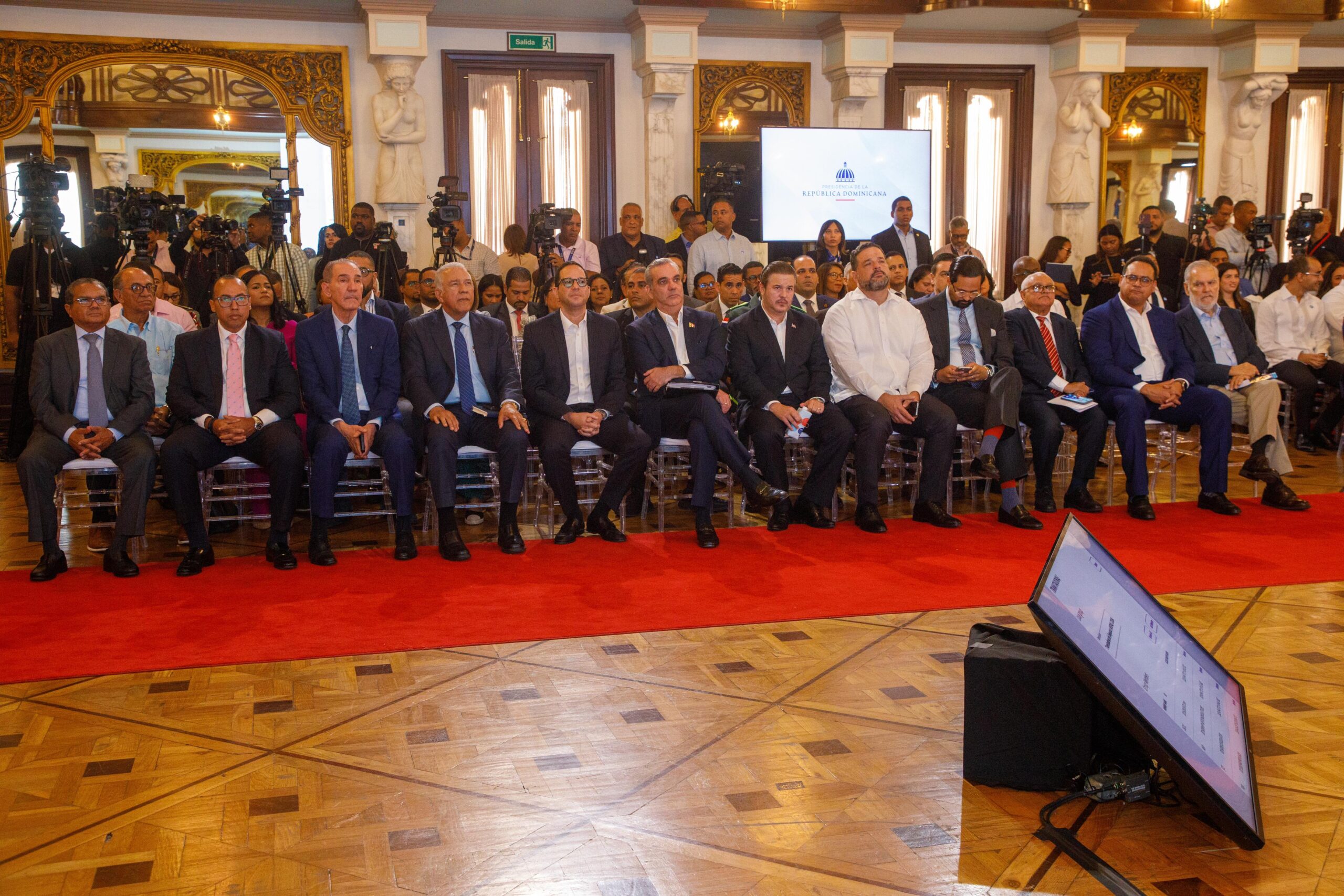Acompañaron al presidente Luis Abinader, los ministros Administrativo y Financiero de la Presidencia, Andrés Bautista; de Educación Superior, Franklin García Fermín; de Medio Ambiente, Paíno Henríquez; los directores de la Ogtic, Bartolomé Pujals; el Tesorero Nacional, Luis Delgado ylos superintendentes de Salud y Riesgos Laborales, Miguel Ceara Hatton y de Electricidad, Andrés Astacio, entre otros empresarios y funcionarios.