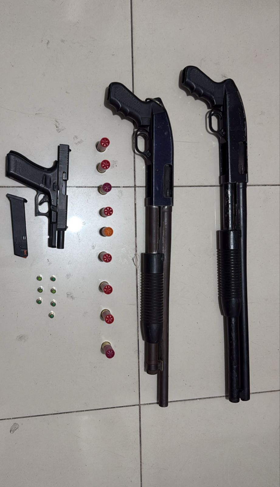 Este grupo fue apresado cuando se desplazaban a bordo de un vehículo utilizado para cometer los atracos. A los prevenidos se les ocuparon dos escopetas, un arma blanca tipo puñal, una pistola de fogueo, además de varios celulares sustraídos a sus víctimas.