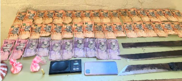 En otro operativo, realizado en el sector Las Cachuchas, fue arrestado el nacional haitiano YeYe Pie, a quien se le ocupó una cartera que contenía aproximadamente 78 gramos de presuntas sustancias narcóticas, una balanza para pesar drogas, la suma de RD$4,400.00 en efectivo, así como tres armas corto-punzantes.