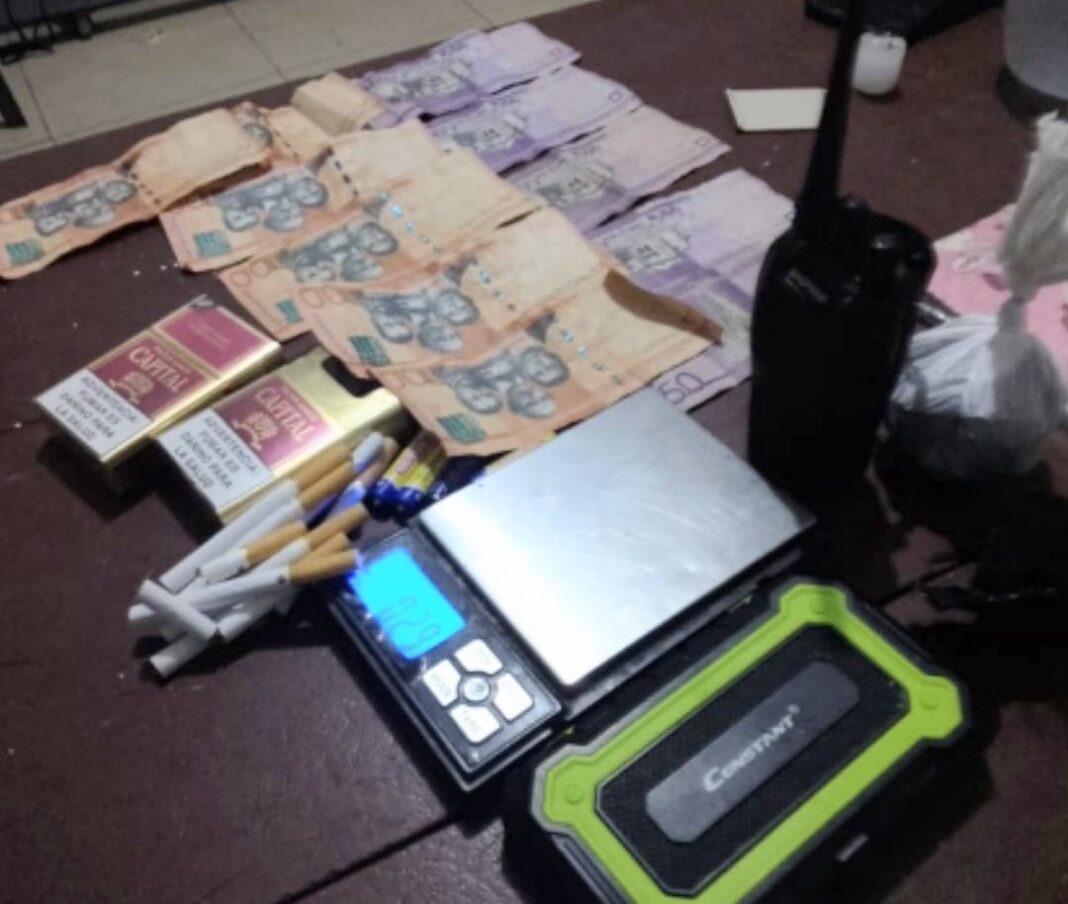 El detenido es Richard Esteban, a quien se le ocupó una mochila que contenía aproximadamente 180 gramos de distintas sustancias narcóticas, dos balanzas, 12 cigarrillos de contrabando, un radio de comunicación y la suma de 800 pesos en efectivo.