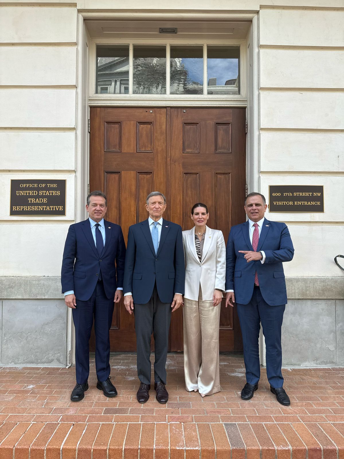El Embajador Greer estuvo acompañado de Sam Mulopulos, jefe de gabinete del Representante Comercial; Daniel Watson, representante comercial adjunto para el Hemisferio Occidental; y Andrea Malito, directora senior para RD-CAFTA.