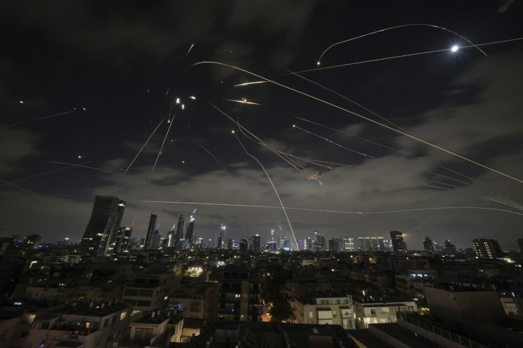 El sistema de defensa aérea israelí Iron Dome dispara para interceptar misiles durante un ataque iraní sobre Tel Aviv, Israel, el domingo.