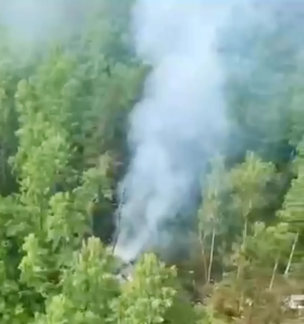 Captura de un video distribuido por el Ministerio de Situaciones de Emergencia de Rusia del lugar del accidente aéreo