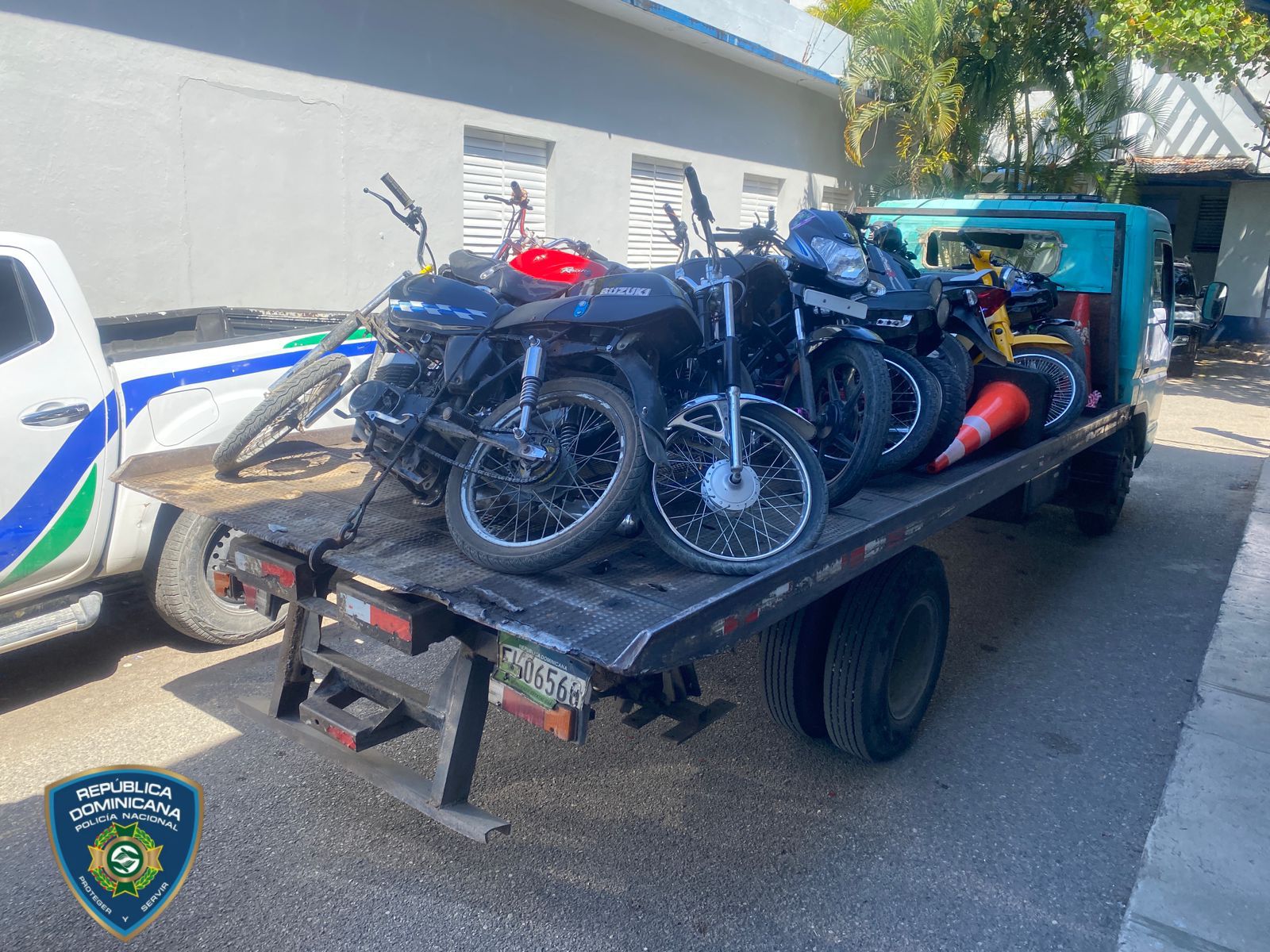 Durante el operativo fueron retenidas 12 motocicletas, tipo pasola y motocicletas convencionales, las cuales no portaban ningún tipo de documentación al momento de su incautación. Estas fueron enviadas al Canódromo de la Policía Nacional en Santo Domingo para los fines legales correspondientes.