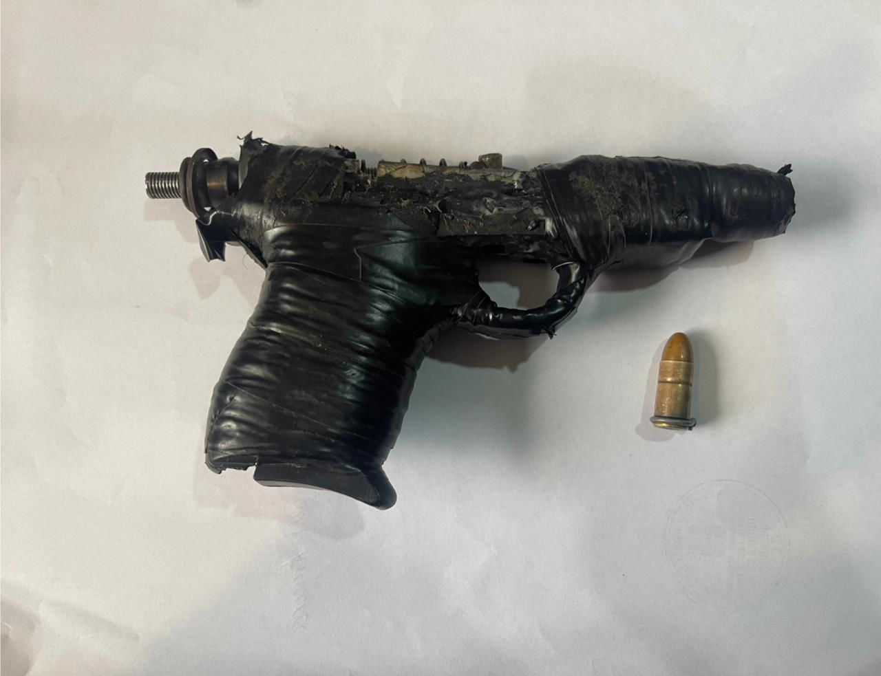 Durante una inspección corporal, a uno de los abordados, identificado como Edward Antonio de la Cruz Gabriel, de 26 años, se le ocupó un arma de fabricación artesanal, tipo chilena, con una cápsula calibre 9 mm.