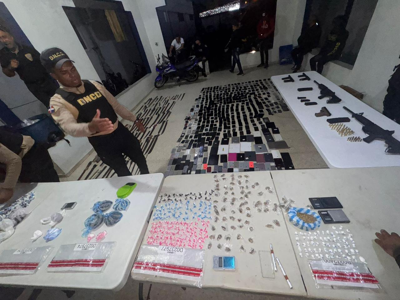 Policía Nacional y Ministerio Público ocupan fusiles, municiones y más de 200 equipos electrónicos en operativos realizados en la provincia Duarte