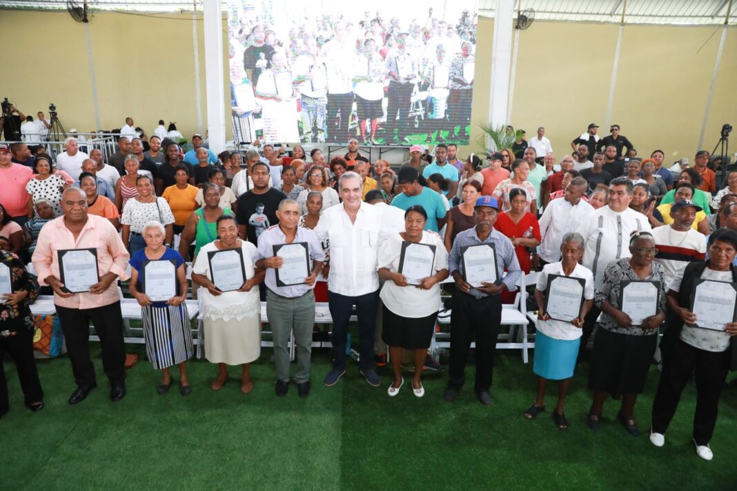 DIARIOPAISRD. COM**INFORMACION PRODUCIDA EN LA PROVINCIA DE AZUA,SITUDA EN LA REGION SUR DEL PAIS.  El presidente Luis Abinader entregó este sábado 450 títulos de propiedad para beneficiar a 2,404 personas en el distrito municipal Las Clavellinas,  de aquí.