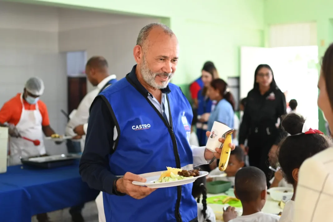 Ese gesto de sencillez sentarse con los infantes para sin temor les cuente sus temores y como se sienten con lo que están ingiriendo diario; este señor es un verdadero caballero estar rodeado niños escolares para ver si los que están comiendo es de calidad. Víctor Castro, no es solamente estar detrás de un escritorio sino estar atento de los que les sirven a los infantes en las escuelas, para eso la mañana de este este miércoles llevo a efecto una brillante supervisión del funcionamiento del Programa de Alimentación Escolar (PAE) tal como ha venido haciendo en los centros educativos como parte del amplio programa de seguimiento que realiza un equipo de colaboradores a nivel nacional para garantizar la efectividad de esta política social.