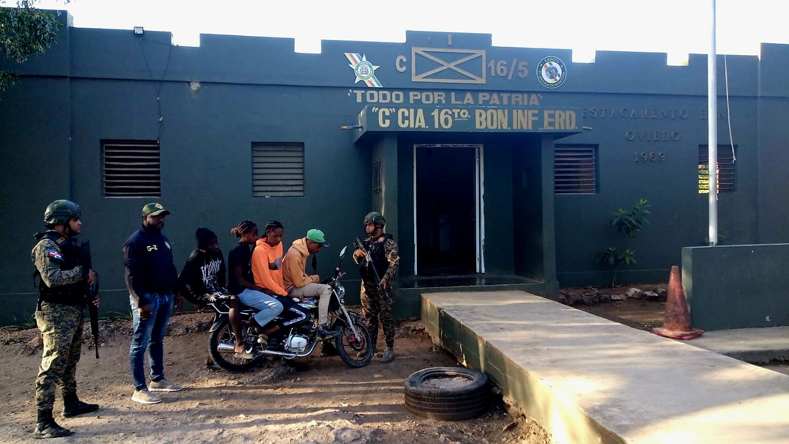 Mediante patrullaje realizado por efectivos del Ejército, en el municipio de Oviedo, provincia de Pedernales, detuvieron a 04 indocumentados 02 hombres y 02 mujeres, quienes eran transportados por un hombre identificado como Félix Brito, en una motocicleta, marca Benye.