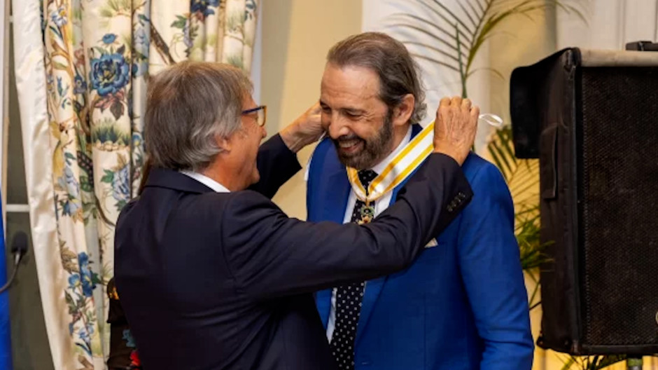 El embajador español en República Dominicana, Antonio Pérez-Hernández, impuso la distinción al cantautor, quien estuvo acompañado de su esposa y sus hijos y quien recordó la primera vez que fue a España, en 1989, para promocionar en televisión su ya mítico tema ‘Ojalá que llueva café’. «Pocos meses después -dijo- lo que era un simple merengue folclórico se convirtió en un clamor de esperanza para el mundo, España nos había abierto sus puertas».