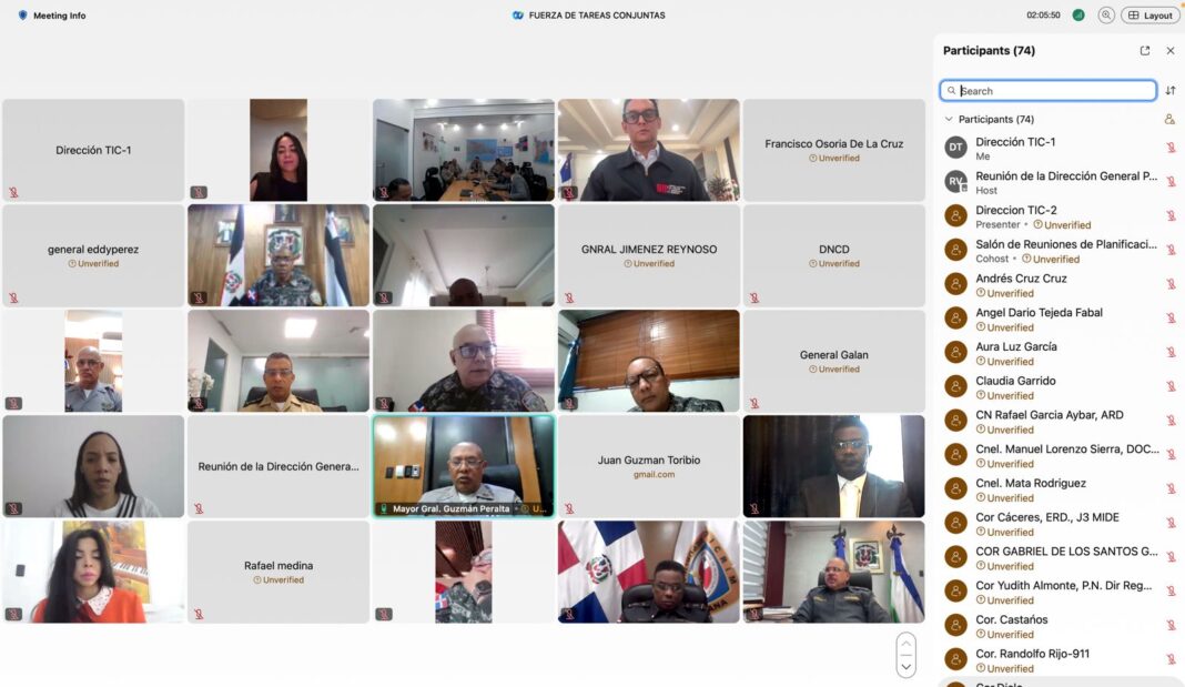Gobierno realiza reunión virtual para evaluar avances del Plan de Seguridad Ciudadana y medidas preventivas de fin de año Este lunes se efectuó la reunión de la Fuerza de Tarea Conjunta No. 73 de seguimiento al Plan de Seguridad Ciudadana, encabezada de manera virtual por la ministra de Interior y Policía, Faride Raful, en la que se analizaron las estadísticas de control delictivo y de operatividad a nivel nacional y las medidas preventivas para reducir accidentes de tránsito como parte del «Operativo Preventivo Navidad con Garantía de Paz 2024». Durante el encuentro, se evaluaron los resultados operativos más destacados de la semana, destacando el compromiso de las autoridades en garantizar la seguridad y el orden público en este período navideño. Además de la ministra Raful, participaron en la reunión el director general de la Policía Nacional, mayor general Ramón Antonio Guzmán Peralta; el comandante general del Ejército de República Dominicana, mayor general Jorge Iván Camino Pérez; el comisionado ejecutivo para la Reforma Policial, Luis Ernesto García Hernández, así como el alto mando policial, oficiales generales y directores centrales, de áreas y regionales de la Policía Nacional. La ministra Raful destacó la importancia de mantener un enfoque integral en la seguridad ciudadana, combinando acciones preventivas y operativas para garantizar la tranquilidad de la población durante las festividades. Las autoridades continuarán reuniéndose para monitorear los avances y ajustar las estrategias según las necesidades del país.