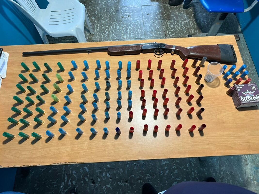 Durante la intervención fue ocupada una escopeta calibre 12, de marca y numeración ilegible, así como 113 cartuchos percutidos de diferentes marcas y colores, y 10 cartuchos adicionales sin usar.
