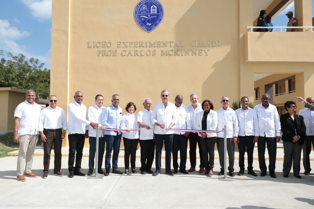 Más temprano, el presidente Abinader, acompañado del ministro de Educación, Ángel Hernández inauguró el Liceo Experimental Prof. Carlos MCkinney de la Universidad Autónoma de Santo Domingo (UASD) en el sector Pueblo Nuevo del municipio Baní, provincia Peravia.