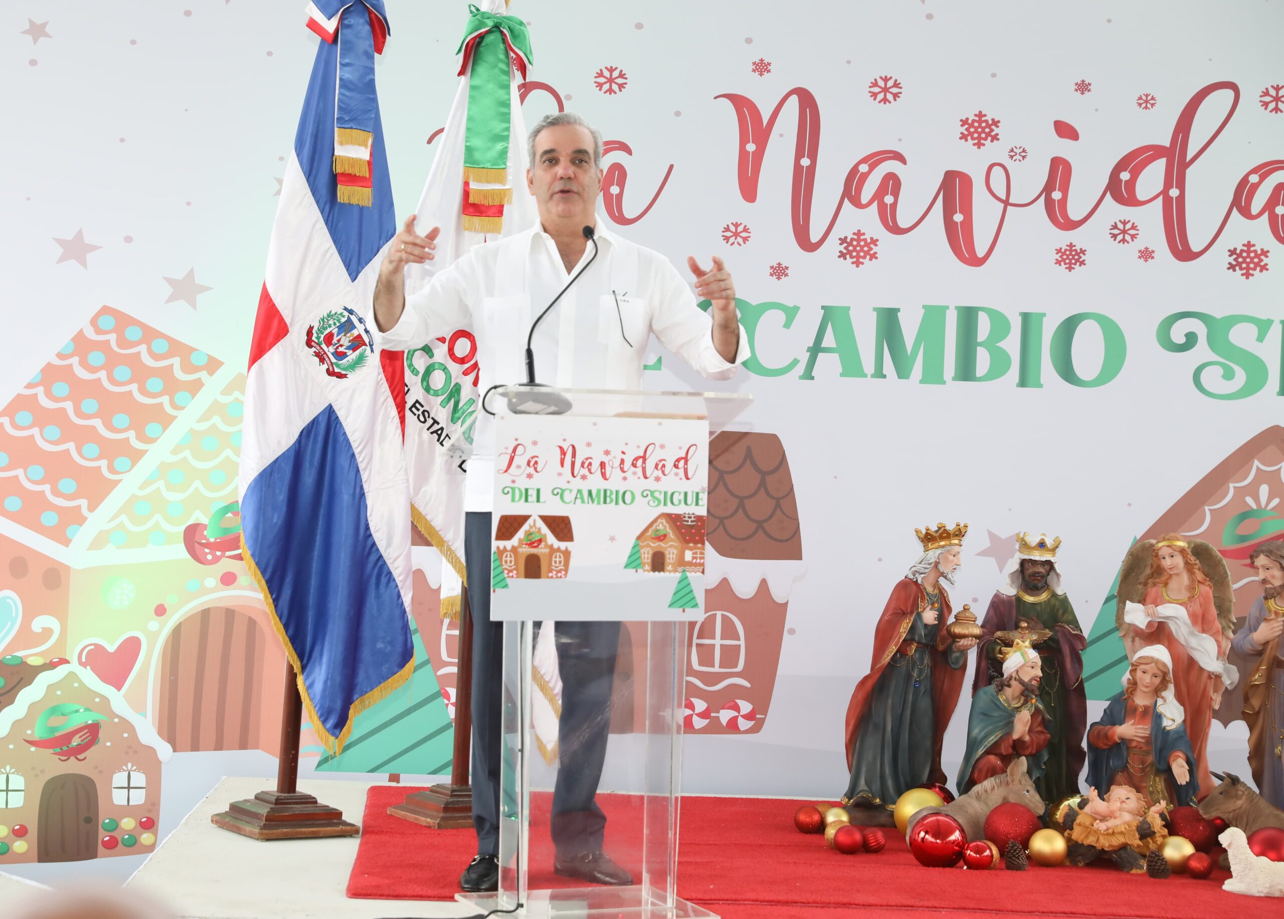 Posteriormente, el jefe de Estado se trasladó al municipio de Santo Domingo Norte, donde encabezó el acto de lanzamiento del programa «La Navidad del Cambio Sigue», con el que se ofrecerán unas 10 millones de raciones de almuerzo y cenas navideñas a la población, distribuidas a través de los 135 Comedores Económicos ubicados en todo el territorio nacional.