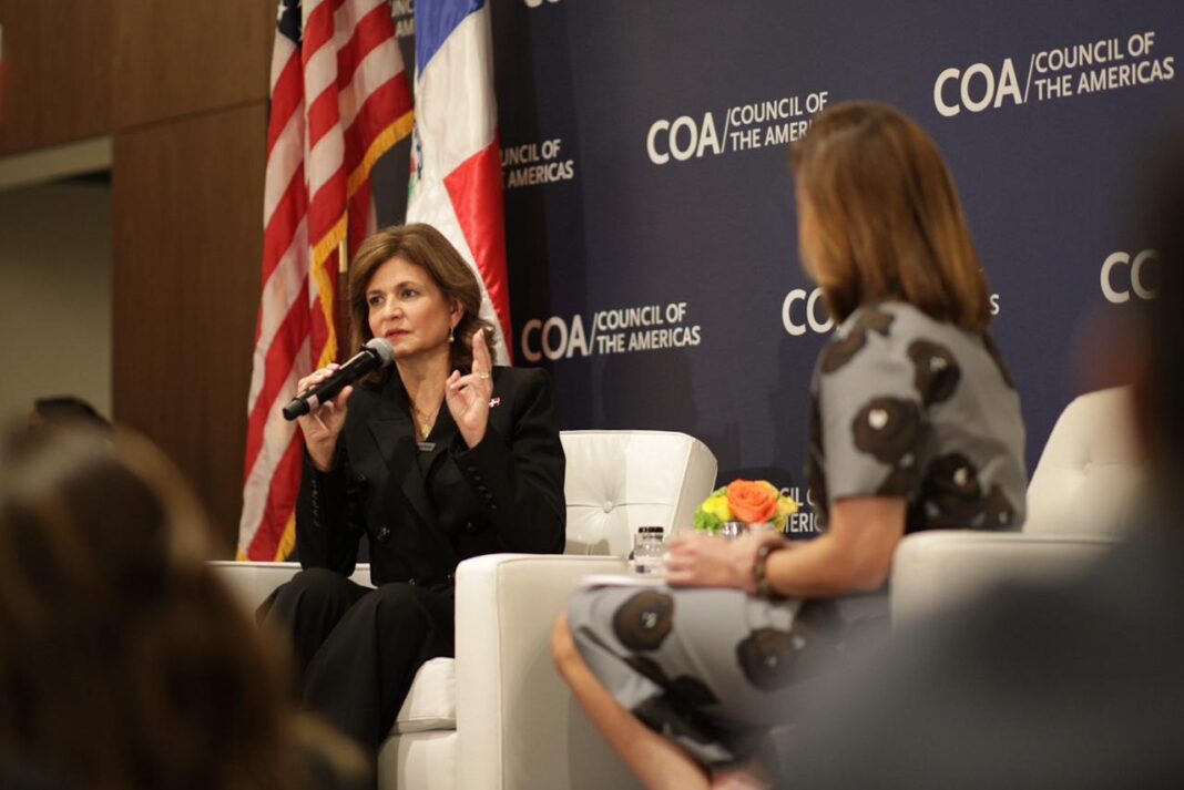 “El sector creció un 10.7 %, generó 183,500 empleos formales y 9,750 millones de dólares en divisas, solo en 2023. Ese mismo año, recibimos más 8 millones de turistas y 2.2 millones de cruceristas; para 2024 se proyecta que recibiremos más de 11.5 millones de visitantes en total. Nuestras políticas de incentivo turístico han fortalecido la ocupación hotelera, que alcanzó un 71.5 % en 2023”, expuso Raquel Peña en su intervención en el Simposio del Consejo de las Américas.