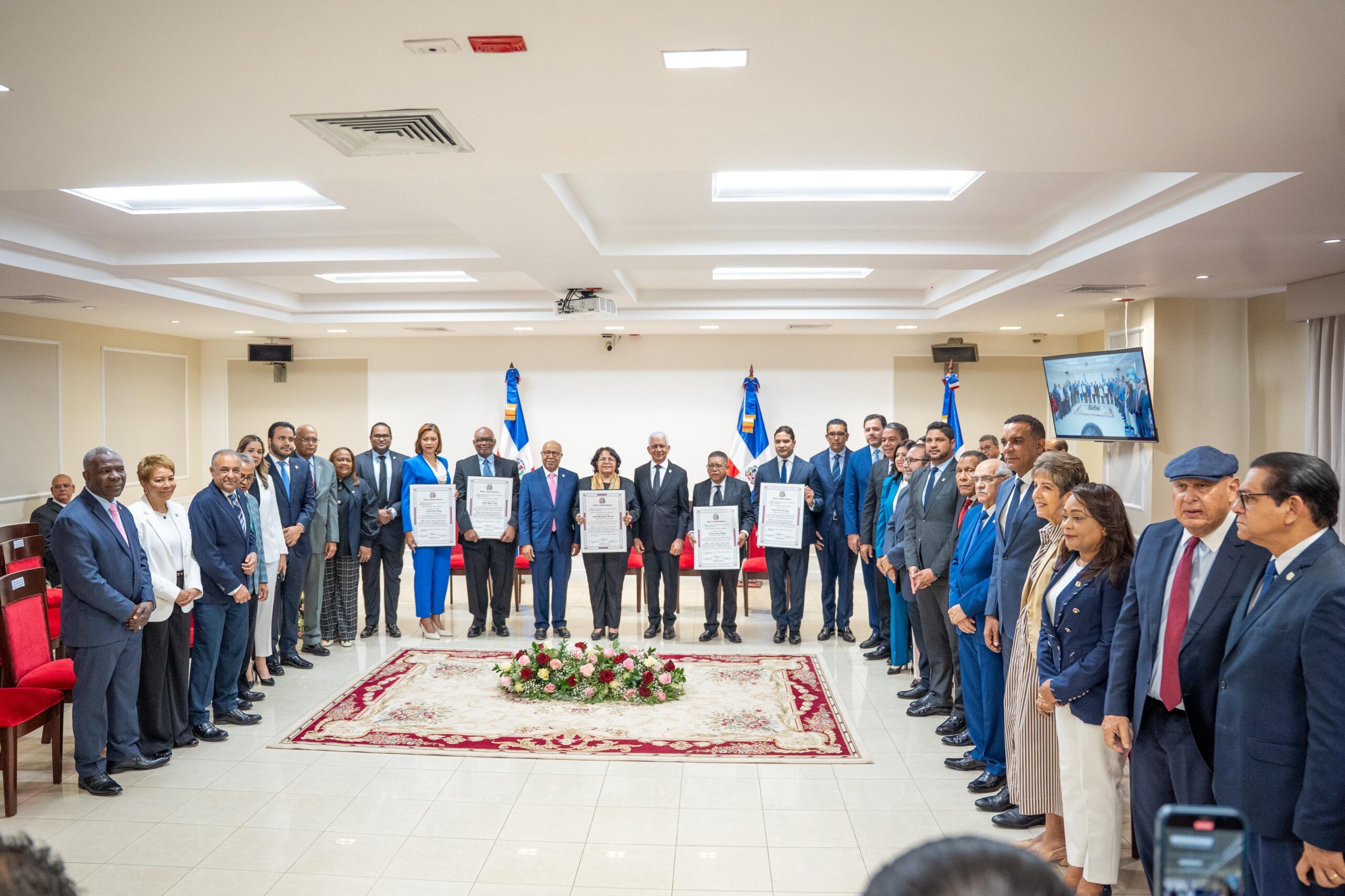 El presidente del Senado, Ricardo de los Santos, hizo entrega de los certificados a los seleccionados en compañía del presidente de la Cámara de Diputados, actividad que contó con la presencia del pleno de la Comisión Especial del Senado que estudió las ternas, donde asistieron, además, los senadores Lía Inocencia Diaz de Diaz, Ginette Bournigal de Jiménez, Aneudy Ortiz, Carlos Gómez, Pedro Catrain, Antonio Marte, Daniel Rivera, Odalis Rodríguez.