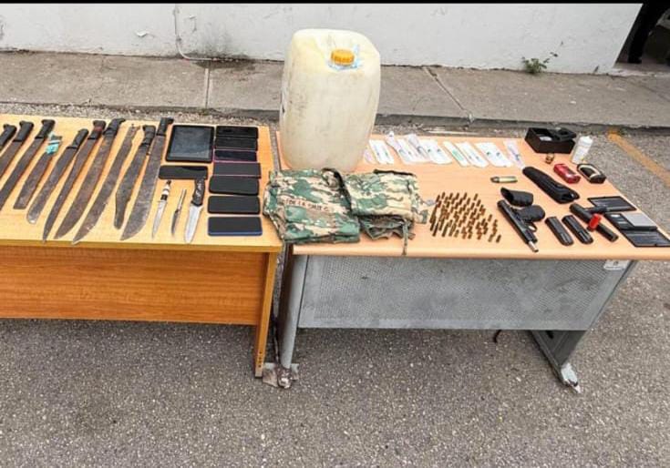 Durante los operativos fueron ocupadas una pistola calibre 9mm con dos cargadores y 59 cápsulas, un arma de fabricación artesanal tipo «chilena» con un cartucho calibre 12mm, veinte armas corto punzantes, ocho teléfonos celulares, dos balanzas presuntamente utilizadas para el pesaje de sustancias controladas, varias prendas de uso militar y un garrafón lleno de ron adulterado.