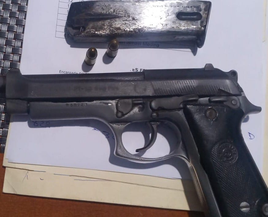 Durante la intervención, las autoridades incautaron una pistola marca VIKINGO, calibre 9mm, serie U544601776, con un cargador y 11 cápsulas, cinco cartuchos para escopeta calibre 12mm, 101 porciones de un vegetal presumiblemente marihuana, cinco porciones de un polvo blanco presumiblemente cocaína, y tres balanzas utilizadas para pesar drogas.