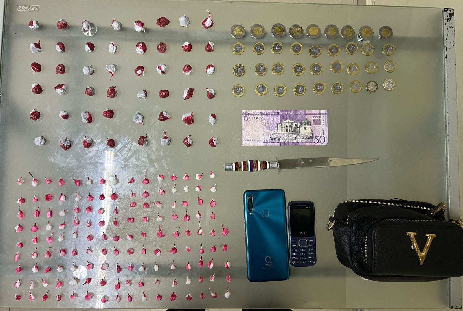 Durante la inspección corporal, los agentes le ocuparon 140 porciones de un material rocoso, presumiblemente crack, y 48 envoltorios de un vegetal que se presume es marihuana. Además, se le confiscaron dos celulares, un puñal y dinero en efectivo.