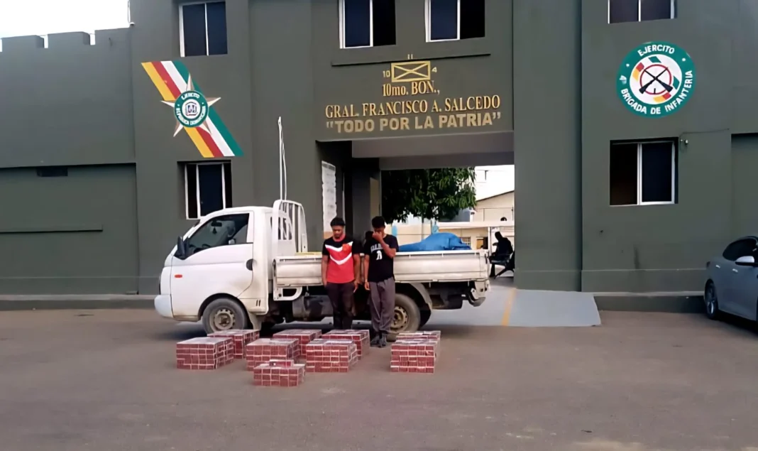 El decomiso se produjo cuando los militares detuvieron un camión marca Kia, color blanco, placa L220120, conducido por Erick David Fiallo Bencosme, quien viajaba acompañado de Kevin Manuel Durán Gutiérrez.
