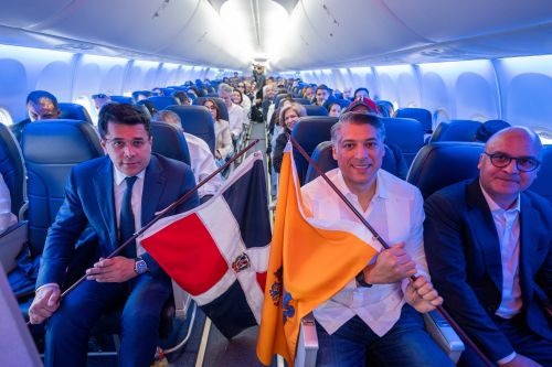 El vuelo inaugural contó con 185 pasajeros, entre ellos el el director del Instituto Dominicano de Aviación Civil, Igor Rodríguez, y el fundador y CEO de Arajet, Víctor Pacheco, quienes levantaron las banderas de República Dominicana y Nueva Jersey desde la cabina de pilotos, como símbolo de la conquista de este nuevo destino en la red de la aerolínea.